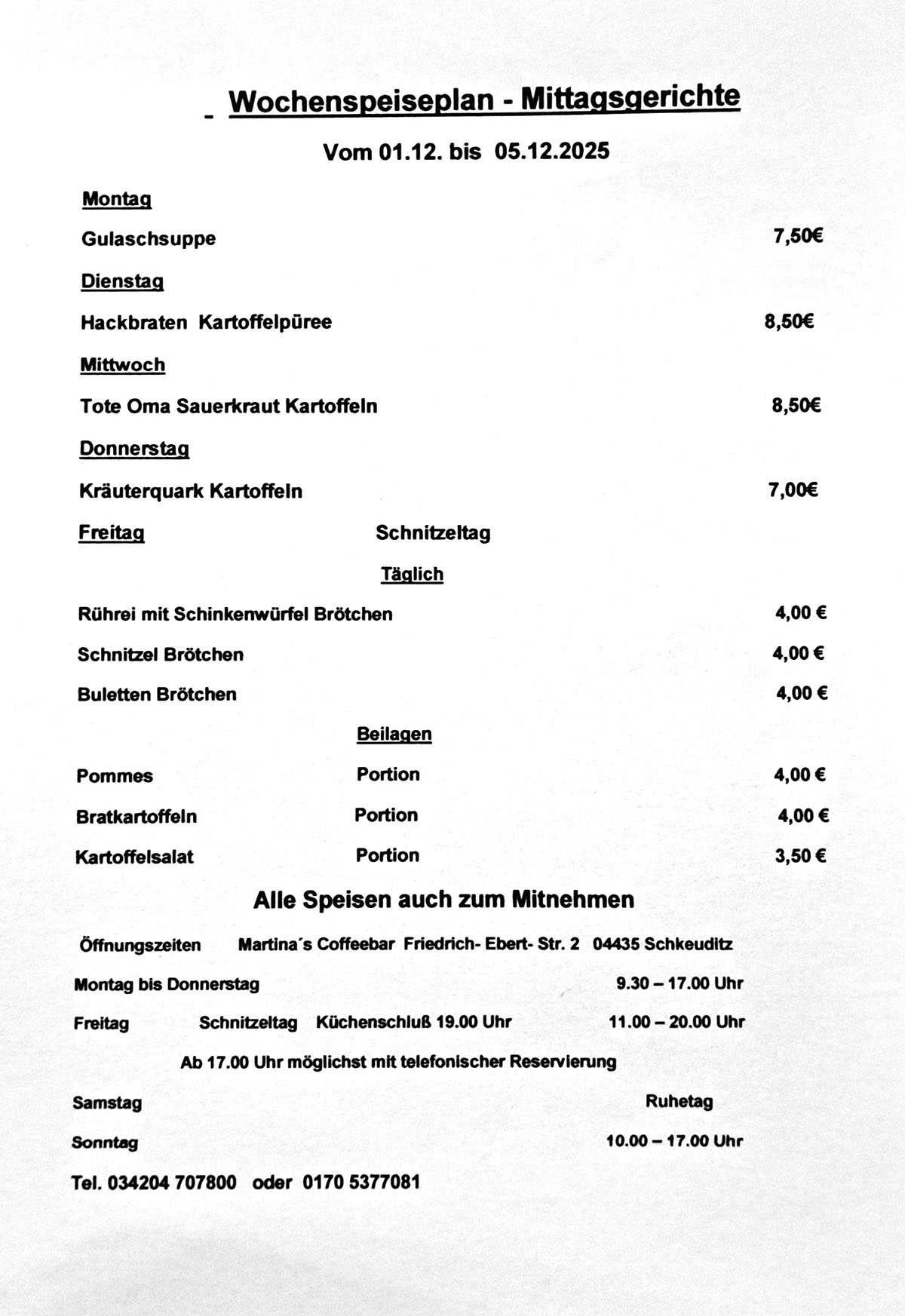 | Donnerstag | 9:30 bis 17:00 Uhr |