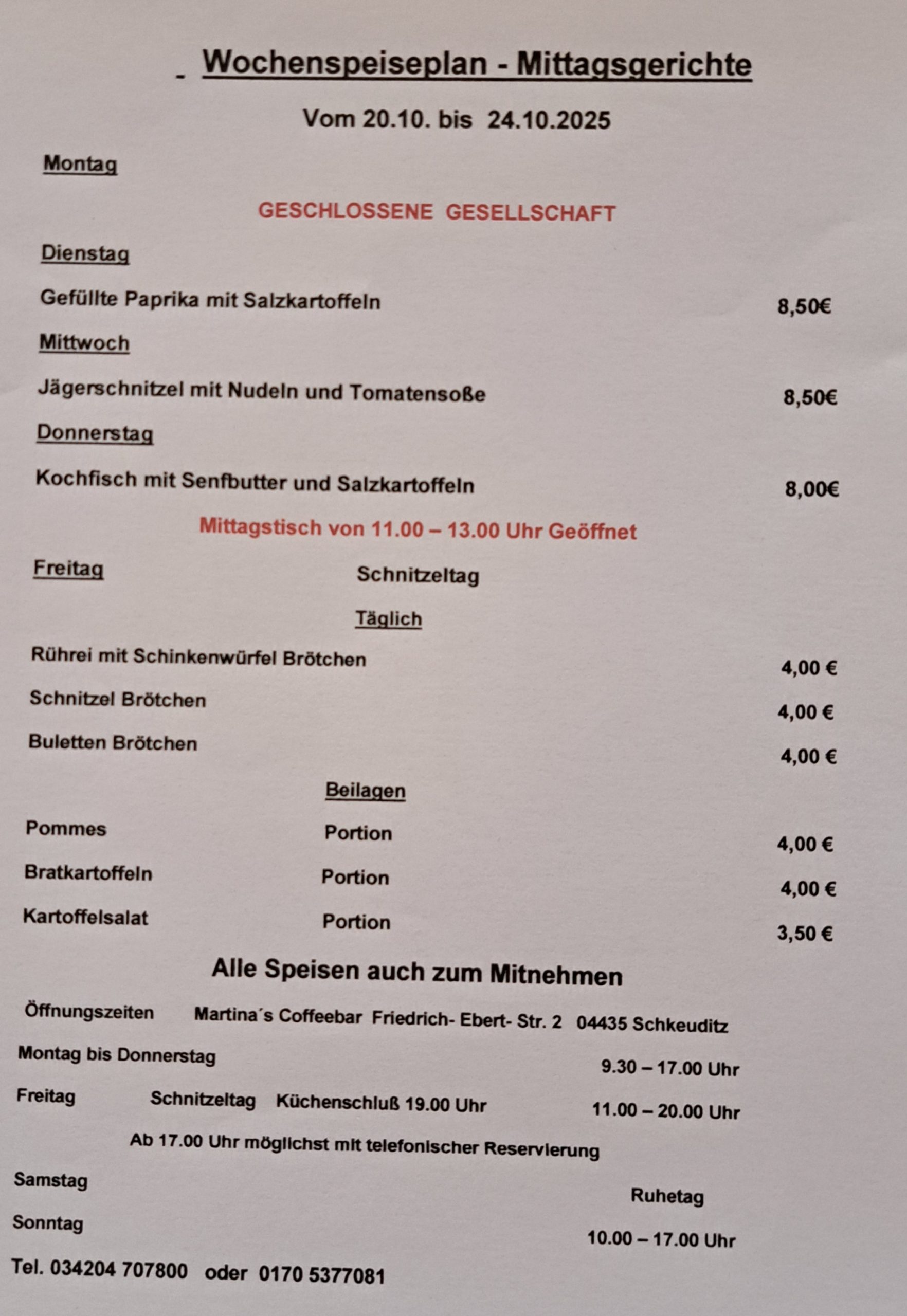 Küchenschluss 20:00 Uhr | 11:00 bis 20:00 Uhr » Schnitzeltag |