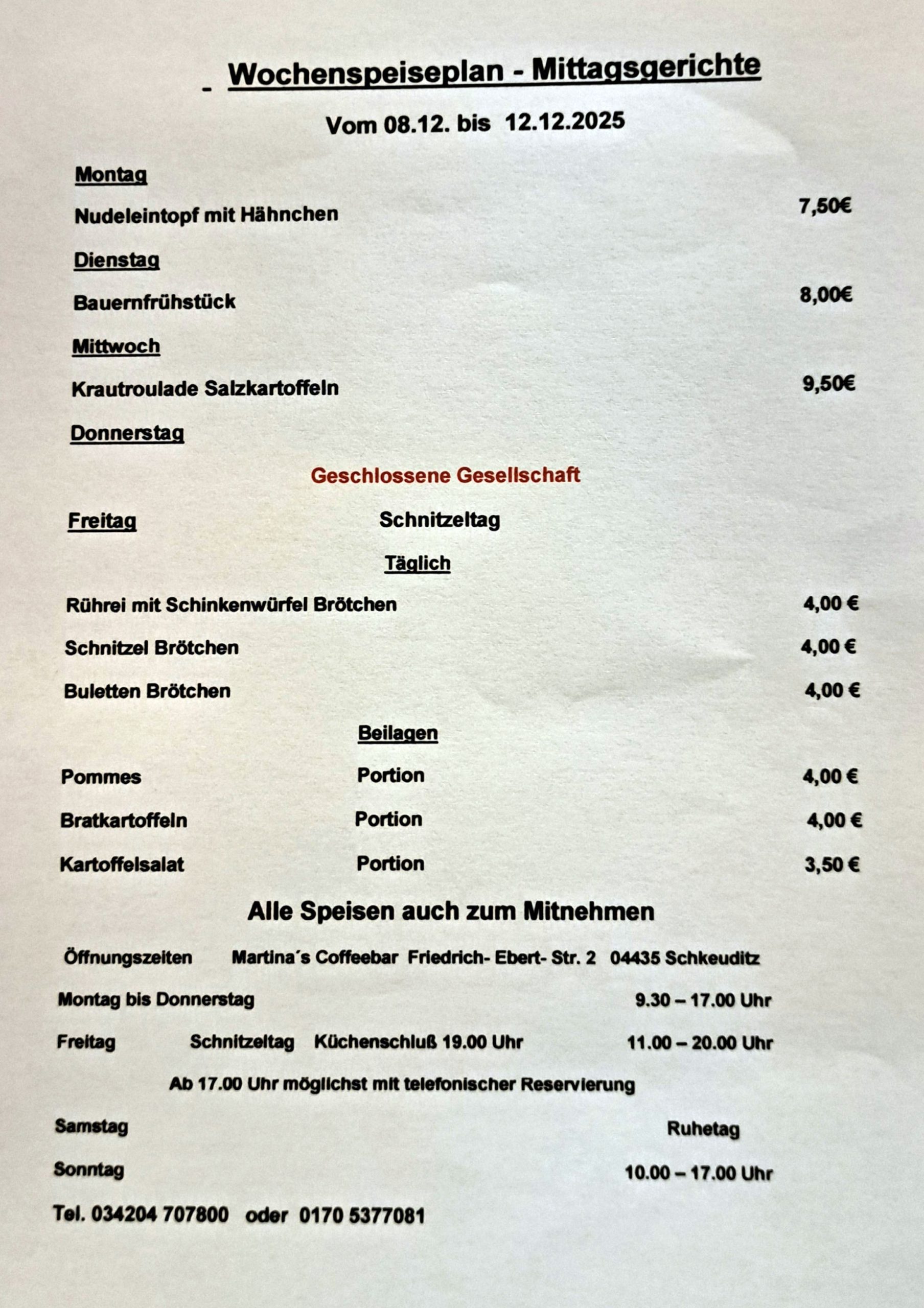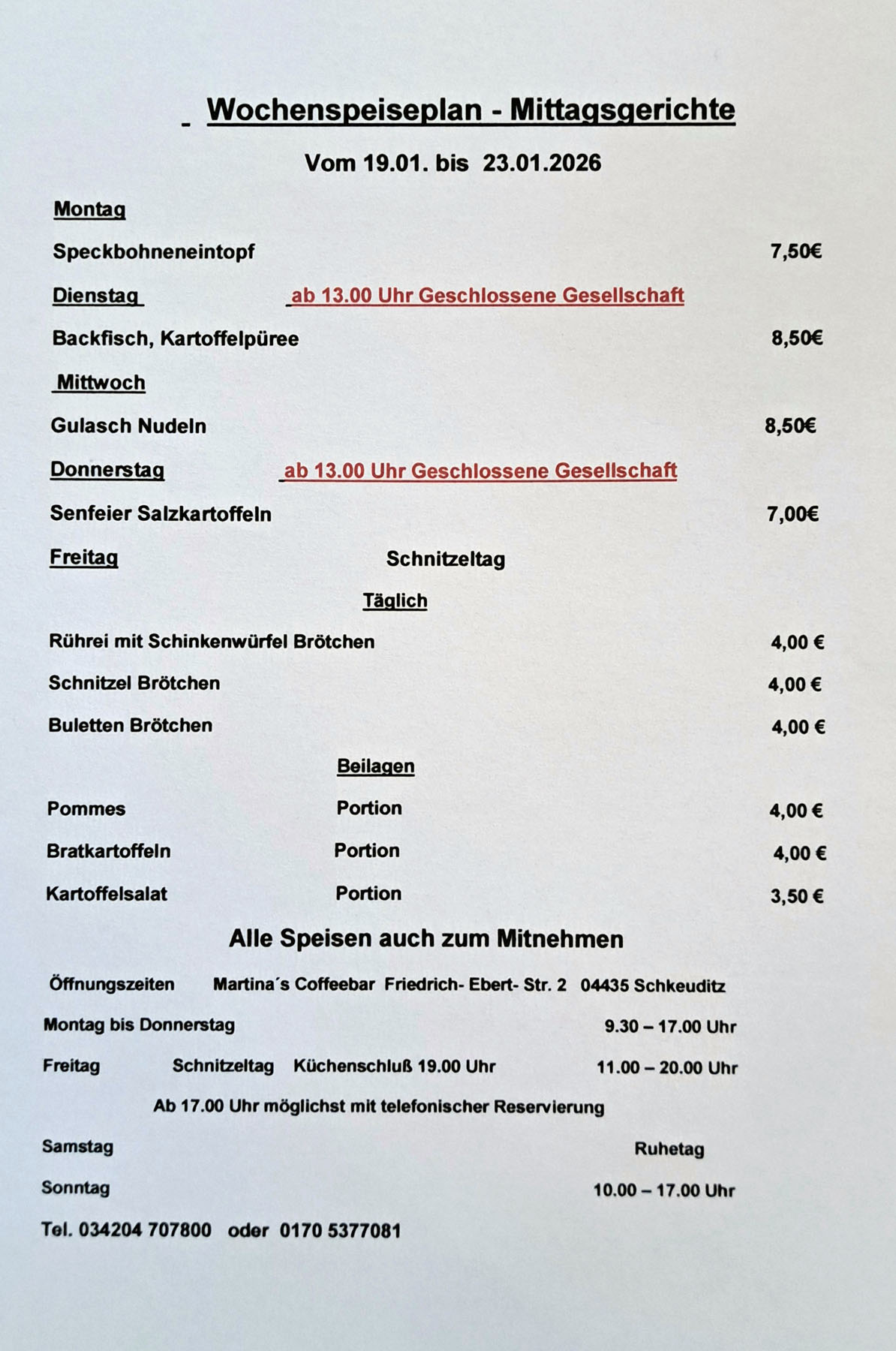 Feierlichkeiten nach Vereinbarung Kontakt Tel. 034204 707800 oder 0170 5377081