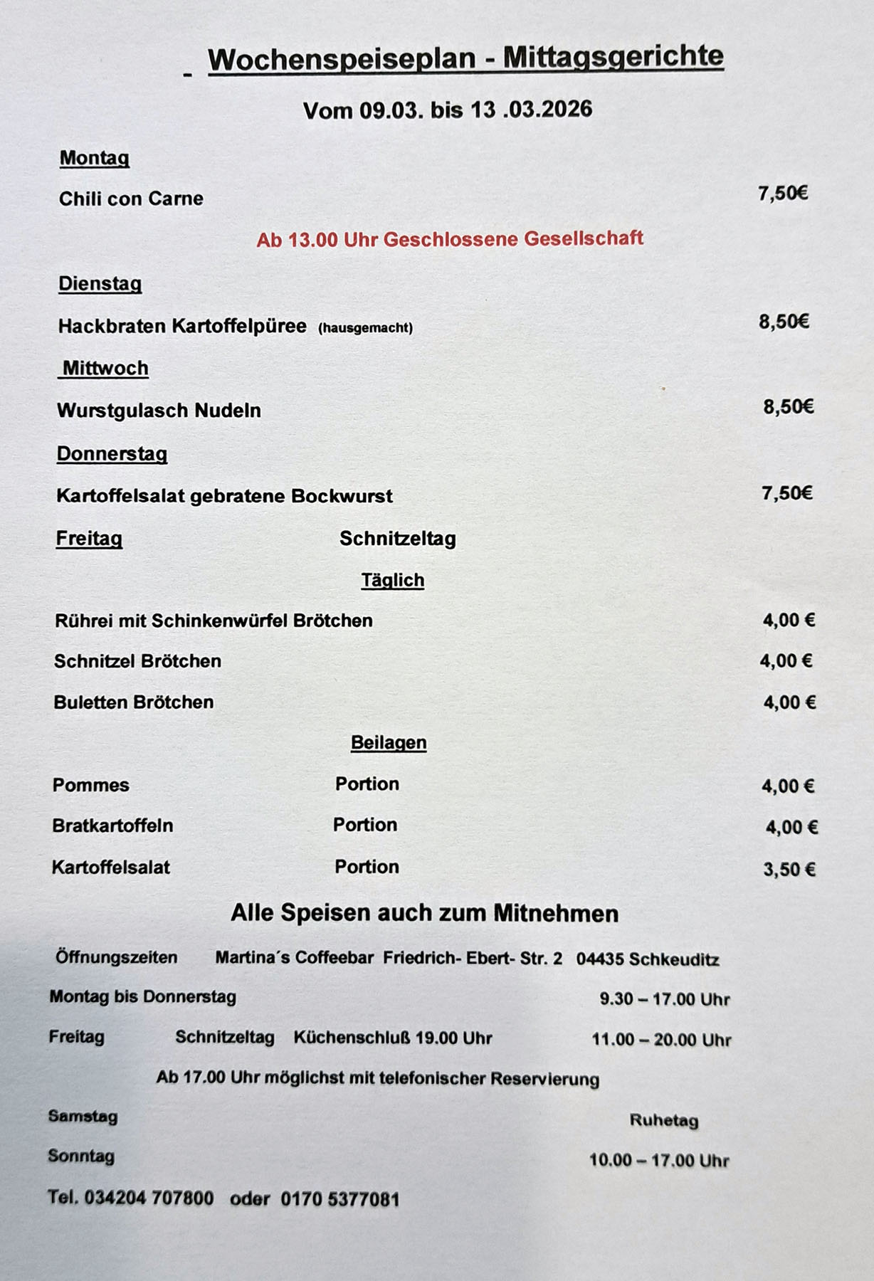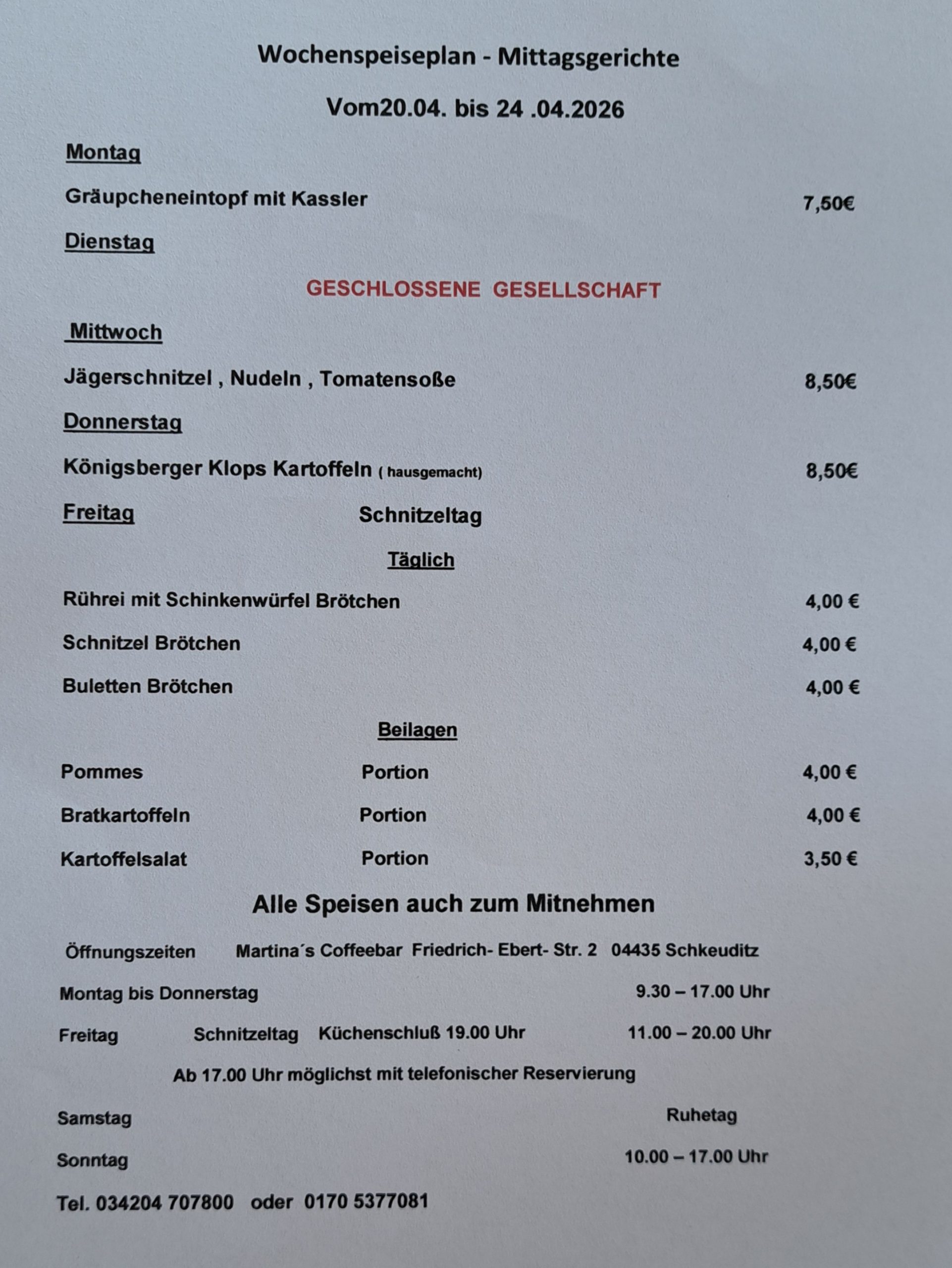 Feierlichkeiten nach Vereinbarung Kontakt Tel. 034204 707800 oder 0170 5377081