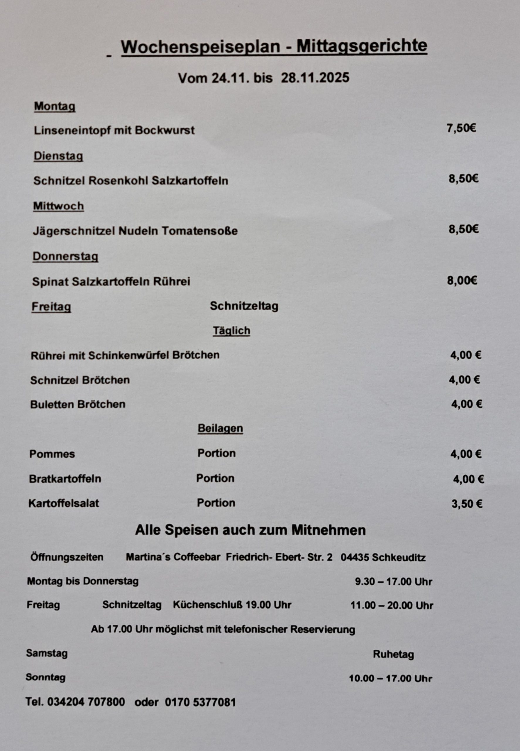 aktuelle Wochenkarte